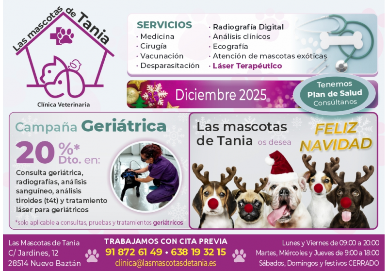 Bienvenidos a vuestra clínica veterinaria de confianza. Ubicados en Nuevo Baztán, nos posicionamientos como el veterinario de referencia en todo el Corredor del Henares. Ofrecemos un servicio integral para el cuidado y bienestar de perros, gatos y animales exóticos, abarcando desde revisiones de salud hasta tratamientos avanzados. Atendemos con dedicación y experiencia las necesidades de cada mascota. Desde consultas preventivas hasta servicios de diagnóstico y cirugía, en Las Mascotas de Tania te ofrecemos atención de calidad en un entorno cómodo y adaptado para cada especie.